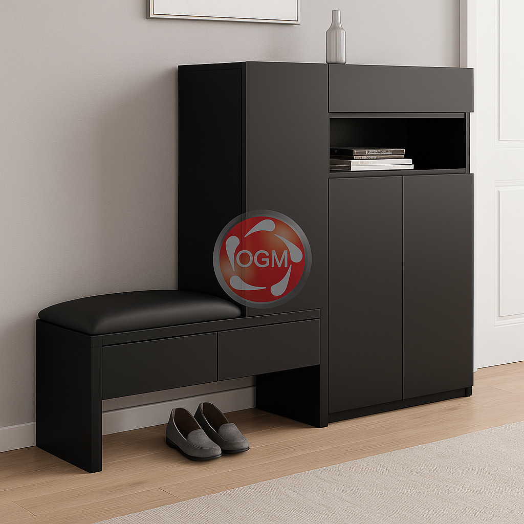 Modern Shoe Cabinet with Bench & Top Storage – OGM