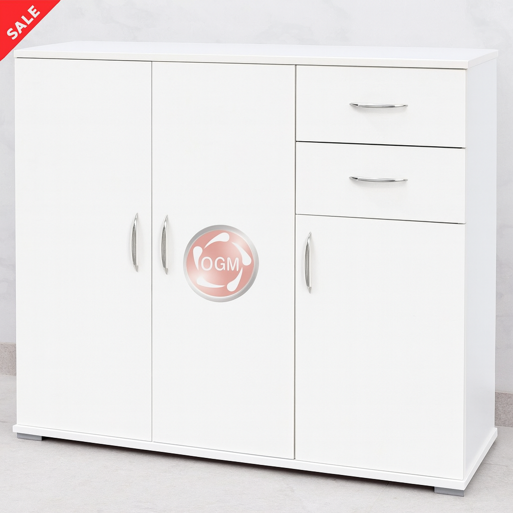 3 ضلف رئيسية + 2 درج علوي، ومفصلات سوفت كلوز لضمان فتح وغلق هادئ.